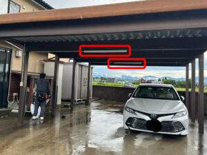 広いカーポートを明るく改善した電気工事事例