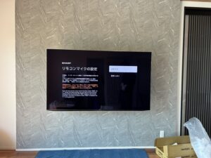 施工後の写真では、大型薄型テレビが壁掛けされ、リビング空間が広く感じられる仕上がりとなりました。配線も壁内に隠れているため、見た目がすっきりしています。施工時間は予定通り約2時間で完了し、お客様にも大変ご満足いただけました。